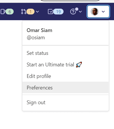In the top right corner you see your user settings menu. Open it and choose preferences.