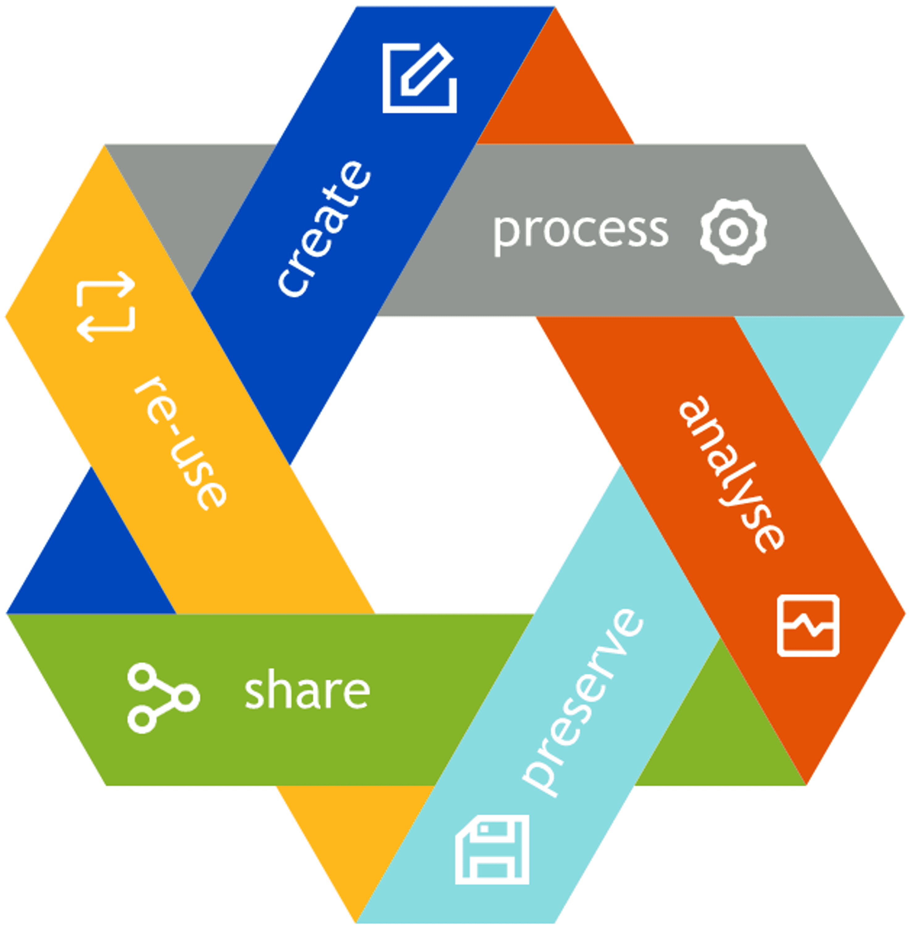 Gerade die Aspekte archivieren (preserve) und teilen (share) sind wichtige Bestandteile aus diesem Lebenszyklus, für den eine Langzeitarchivierung Grundvoraussetzung ist, um nachhaltig zu funktionieren.