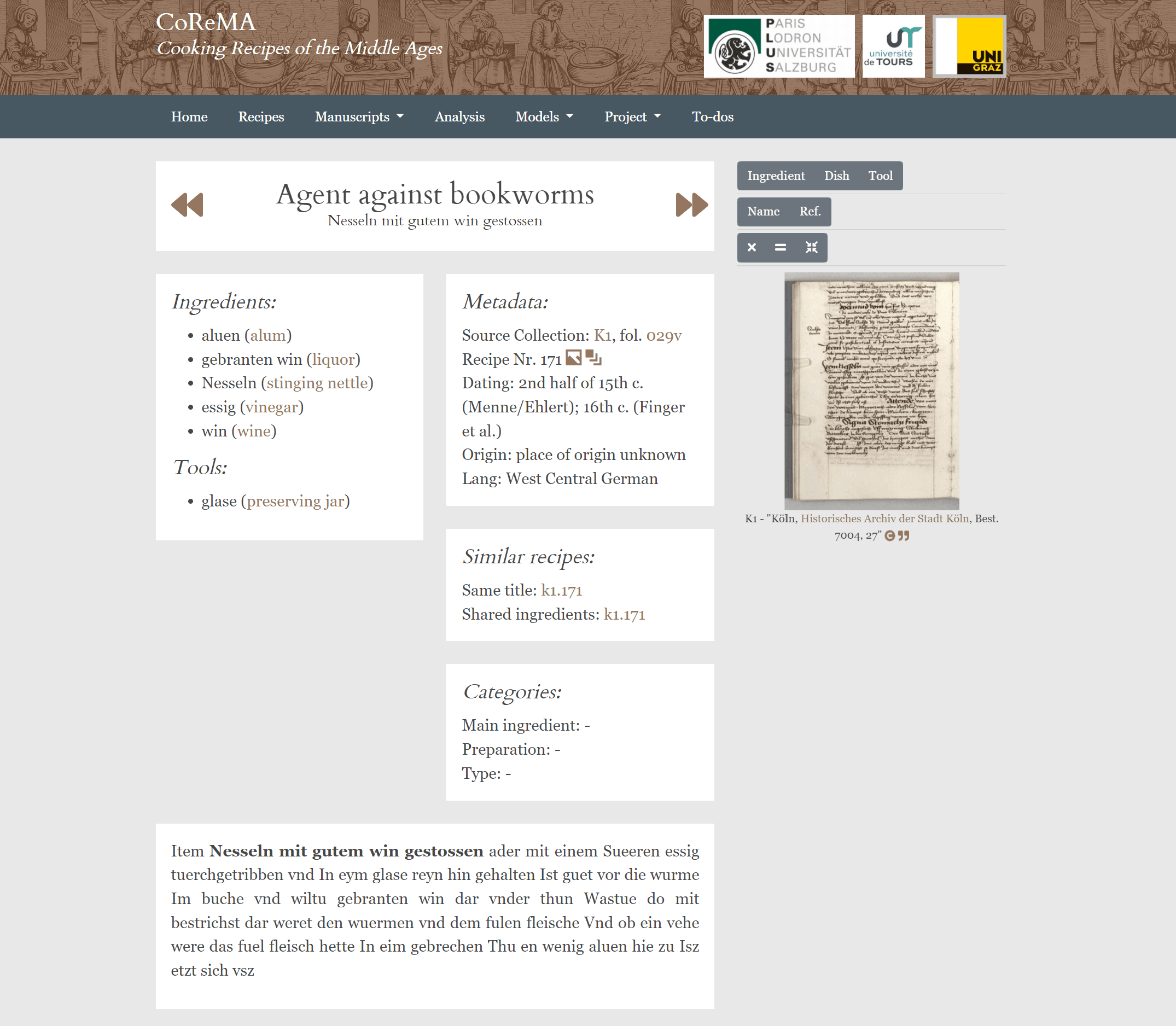E.2. GAMS – CoReMa (Cooking Recipes of the Middle Ages)